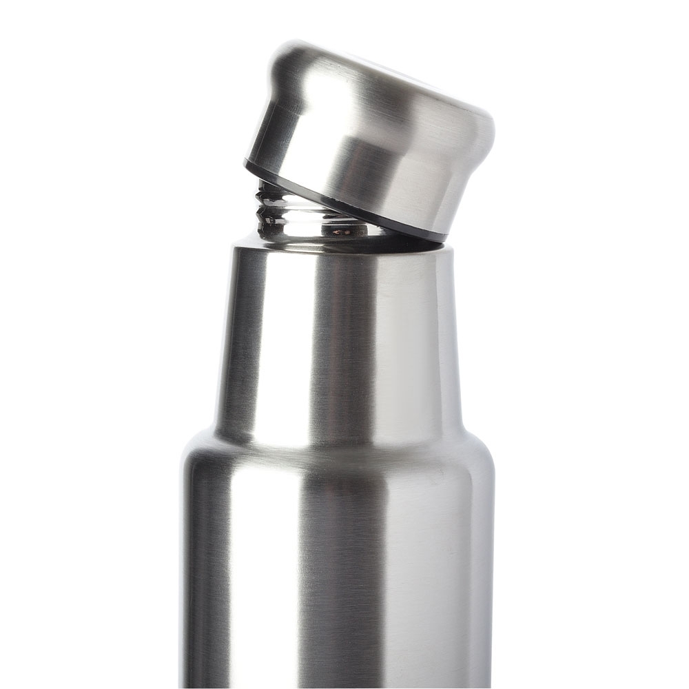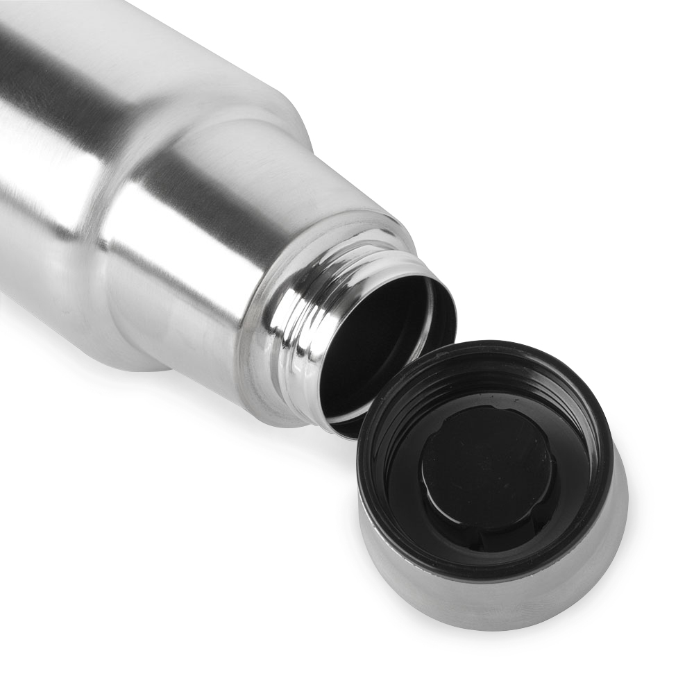 Garrafa de inox 201 com capacidade de 980ml.